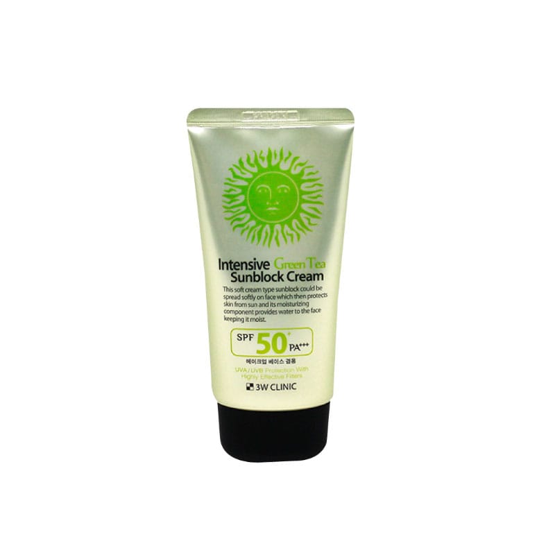 3W Clinic Intensive Green Tea Sunblock Cream SPF 50+ PA+++ ? 70ml offers broad-spectrum sun protection with the added benefits of green tea extract to soothe and hydrate the skin. Its lightweight, non-greasy formula absorbs quickly, leaving no white cast.