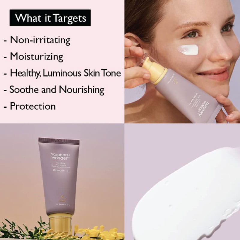 Protect your skin daily with HARUHARU WONDER Black Rice Pure Mineral Relief Daily Sunscreen 50ml. This gentle, mineral-based sunscreen is formulated with 100% non-nano zinc oxide to provide effective broad-spectrum SPF 50+ PA++++ protection against harmful UVA and UVB rays. Enriched with fermented black rice extract and soothing plant-based ingredients, it helps calm and hydrate the skin while defending it from environmental stress. The lightweight, non-greasy texture glides on smoothly, leaving a soft, natural finish without a white cast. Ideal for sensitive skin, this fragrance-free formula minimizes irritation and nourishes the skin barrier while shielding it from daily sun exposure. Perfect for everyday use, it blends effortlessly into any skincare routine, ensuring your skin stays healthy, balanced, and protected.