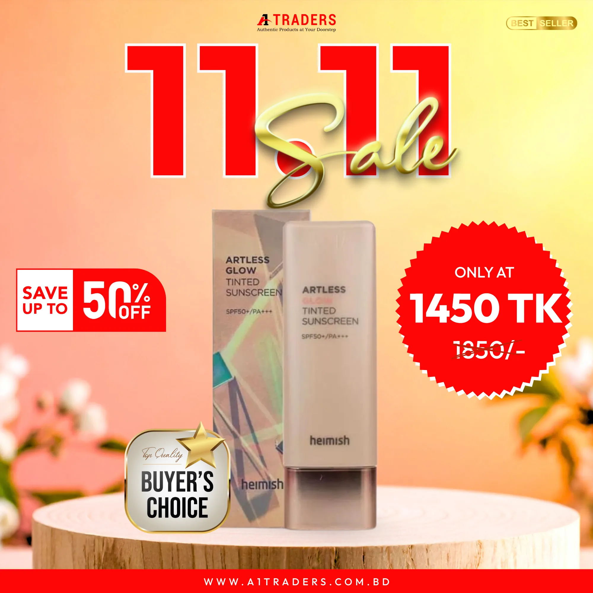 Get your authentic Heimish Artless Glow Tinted Sunscreen Shine Beige SPF50+ PA+++ (40ml) from A1 Traders Bangladesh, your trusted source for genuine Korean beauty products.