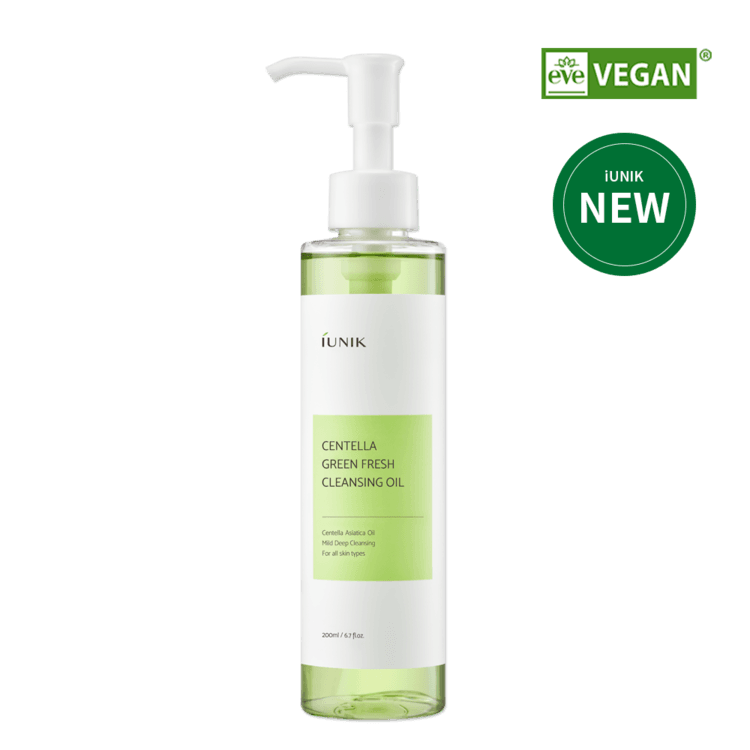 iUNIK Centella Green Fresh Cleansing Oil gently removes makeup and impurities while soothing and hydrating the skin with Centella Asiatica and green tea extract.