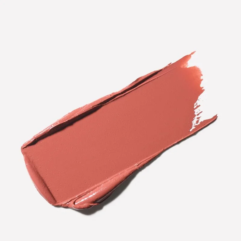 Warm peachy-brown satin lipstick providing creamy, buildable coverage for versatile, everyday elegance.