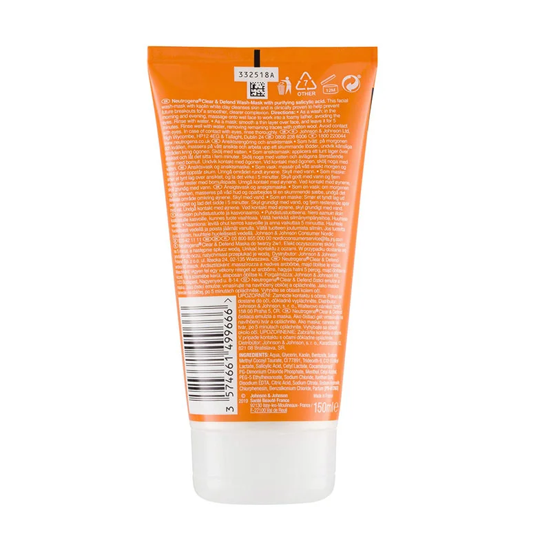 Neutrogena Clear & Defend 2-in-1 Wash-Mask is a dermatologist-developed formula designed for spot-prone skin. This versatile product functions both as a daily facial wash and a weekly mask, helping to clear existing spots and prevent new breakouts. Formulated with 1% salicylic acid and kaolin white clay, it deeply cleanses pores, removing impurities and excess oil while respecting the skin’s natural balance. The oil-free composition ensures the skin feels fresh, smooth, and healthy-looking