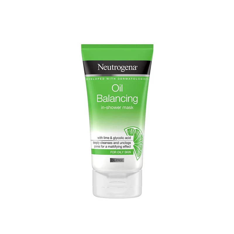 Neutrogena Oil Balancing In-Shower Mask (150ml) is a dermatologist-developed face mask designed specifically for oily skin. Infused with lime and glycolic acid, this oil-free mask works within 60 seconds under the steam of your shower to deeply cleanse and unclog pores. It effectively rebalances oil production, leaving your skin with a visibly mattified and refreshed complexion. The mask is formulated to tighten pores and provide a lasting mattifying effect, making it an ideal addition to your skincare routine.