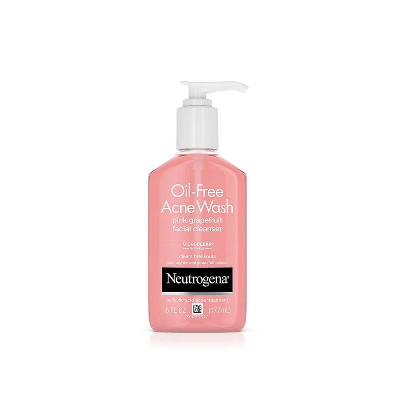 Neutrogena Oil-Free Acne Wash Pink Grapefruit Facial Cleanser (177ml) is a dermatologist-recommended acne treatment designed for oily and acne-prone skin. Infused with 2% salicylic acid, this oil-free gel cleanser penetrates deep into pores to remove excess oil, dirt, and impurities, effectively treating and preventing acne breakouts. The formula also includes naturally derived grapefruit extract and vitamin C, providing an uplifting scent and antioxidant benefits. Its MicroClear? technology enhances the delivery of salicylic acid, ensuring deeper pore cleansing without over-drying the skin