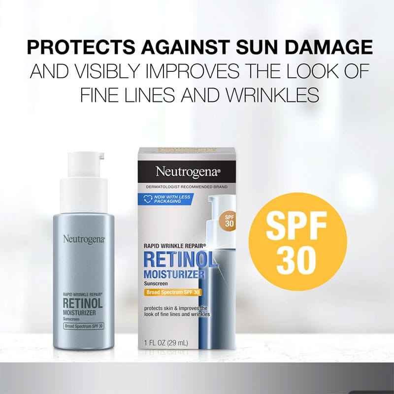Neutrogena Rapid Wrinkle Repair Broad Spectrum SPF 30 Moisturizer (29ml) is a dermatologist-recommended daily moisturizer designed to visibly reduce the appearance of fine lines, wrinkles, and age spots. Formulated with Accelerated Retinol SA, Glucose Complex, and Hyaluronic Acid, it renews the look of skin, delivering smoother and younger-looking skin in just one week. The inclusion of Broad Spectrum SPF 30 provides daily protection against harmful UVA and UVB rays, helping to prevent premature skin aging. This lightweight, oil-free formula absorbs quickly and is suitable for all skin types