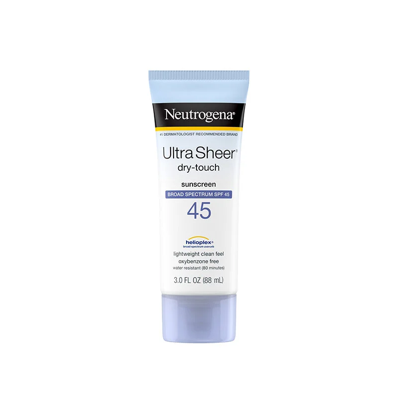 Neutrogena Ultra Sheer Dry-Touch Sunscreen SPF 45 offers high-performance sun protection with a lightweight, non-greasy finish. This broad-spectrum formula shields your skin from harmful UVA and UVB rays while absorbing quickly without leaving any sticky residue. Its dry-touch technology ensures a matte, comfortable feel all day long, making it perfect for everyday use, even under makeup. Ideal for all skin types, it helps prevent sunburn and premature skin aging caused by sun exposure.
