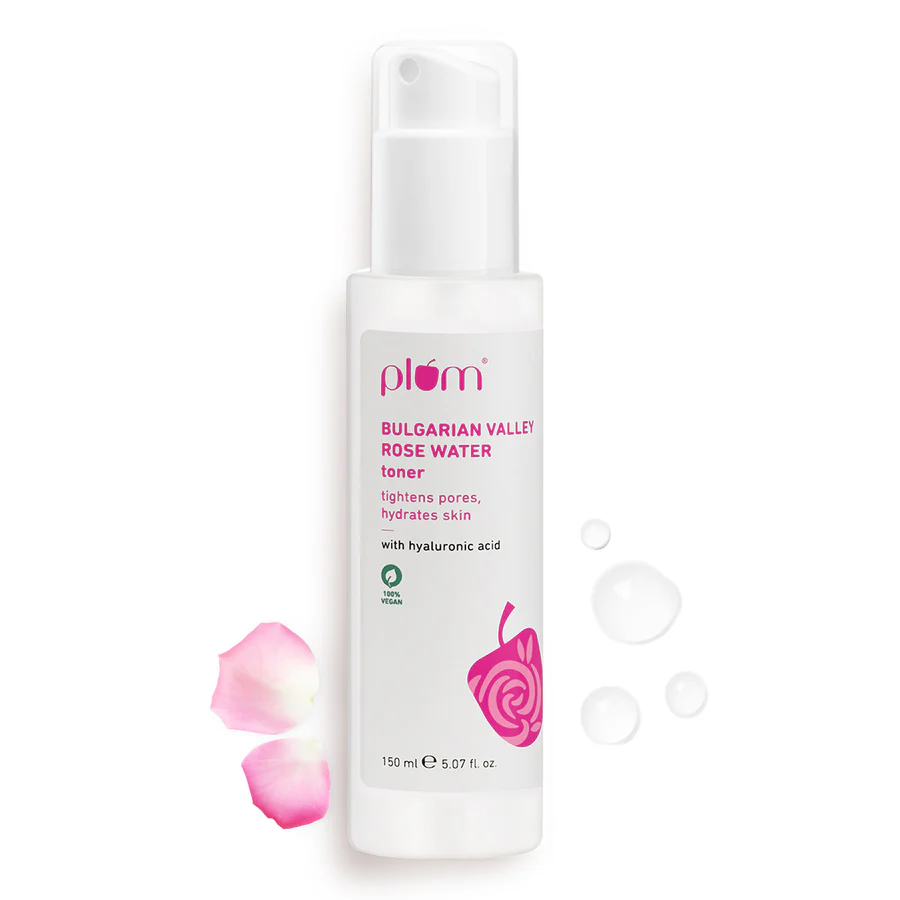 Refresh and balance your skin with Plum Bulgarian Valley Rose Water Toner ? a gentle, alcohol-free toner infused with pure Rosa Damascena flower extract from Bulgaria?s famed Rose Valley. This hydrating formula combines the soothing power of calendula and witch hazel with moisture-boosting hyaluronic acid and glycerin to calm, tone, and plump your skin. It helps tighten pores, reduce redness, and restore your skin?s natural pH, leaving it soft, supple, and radiant. Suitable for all skin types, including sensitive skin, this vegan, cruelty-free toner is free from artificial fragrances and essential oils, making it ideal for daily use.