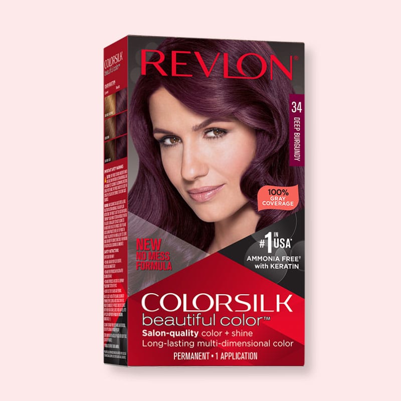 Revlon ColorSilk Beautiful Color 34 Deep Burgundy is a permanent hair dye that delivers a rich, deep burgundy hue with subtle plum undertones. Formulated without ammonia, it provides 100% gray coverage and utilizes Revlon’s 3D Color Gel Technology™ to ensure even, multidimensional color from root to tip. Enriched with keratin and silk amino acids, this hair color not only enhances your hair’s appearance but also improves its condition, leaving it looking and feeling healthier. The no-drip gel texture makes application easy and mess-free, suitable for all hair types and textures.